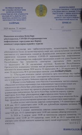 13 апрель 2020 0 1 2 3 4 5 Пандемия кезінде білім беру ұйымдарында, COVID-19 коронавирустық инфекцияның таралуына жол бермеу жөніндегі іс шараларды күшейту туралы