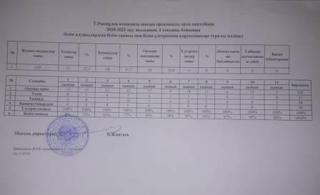 2020-2021 оқу жылының І тоқсаны бойынша білім алушылардың білім сапасы мен білім үлгерімінің көрсеткіштері туралы мәлімет