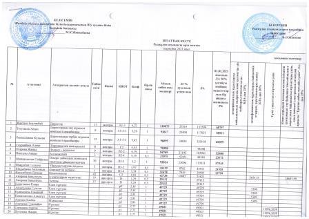 20 сентябрь 2021 0 1 2 3 4 5 Т.Рысқұлов атындағы орта мектебі мұғалімдерінің және басқада педагогикалық қызметкерлерінің тарификациялық тізімі