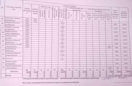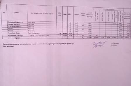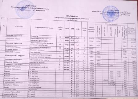 Жамбыл облысы, Шу ауданы, Тасөткел ауылының, Т.Рысқұлов атындағы шағын орталықты орта мектебінің мұғалімдері мен басқада қызметкерлерге арналған тарификациялық тізім